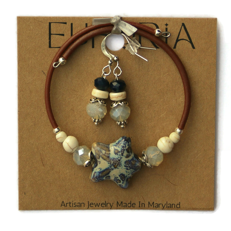 Wrap Bracelet & Earring Set - Ceramic Starfish