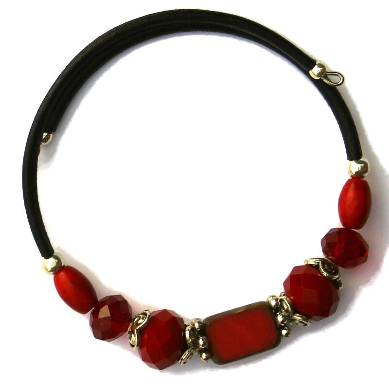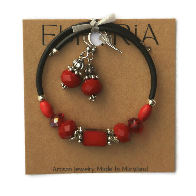 Wrap Bracelet & Earring Set - Red Czech Glass