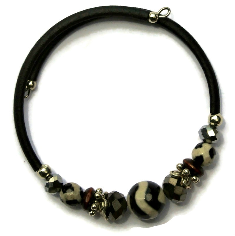Super comfortable silicone covered flexible wire makes these beautiful bracelets a long time best selling item. So easy to put on with not clasp needed - the wire stays in it's circular shape and nicely wraps around your wrist. One size fits most.