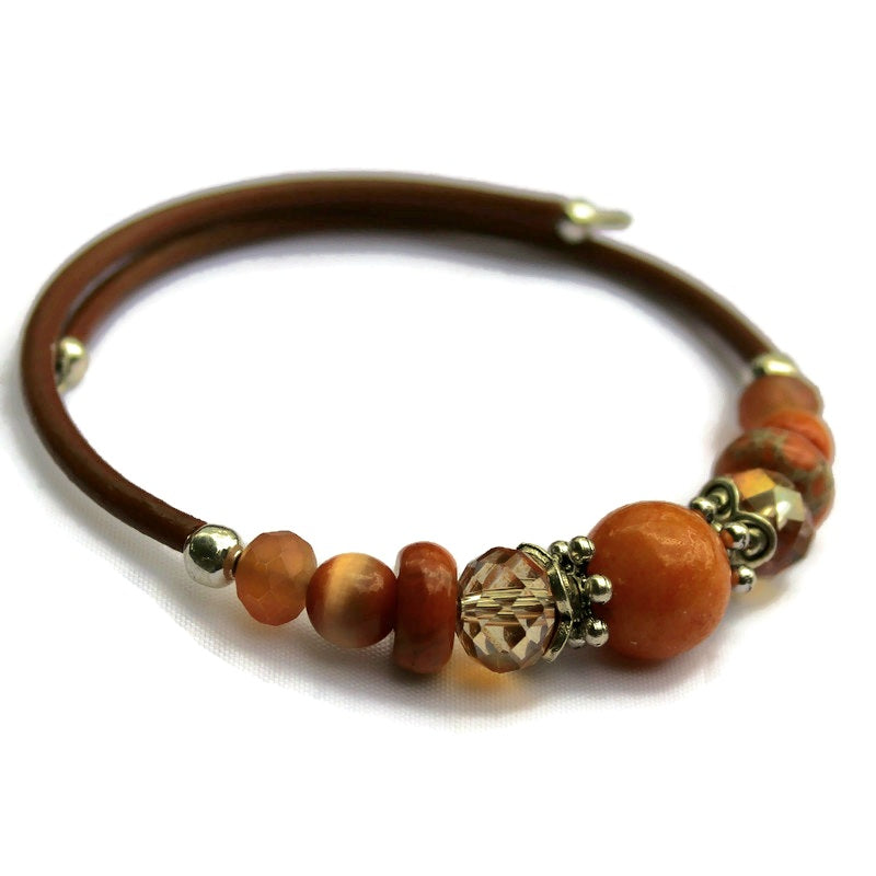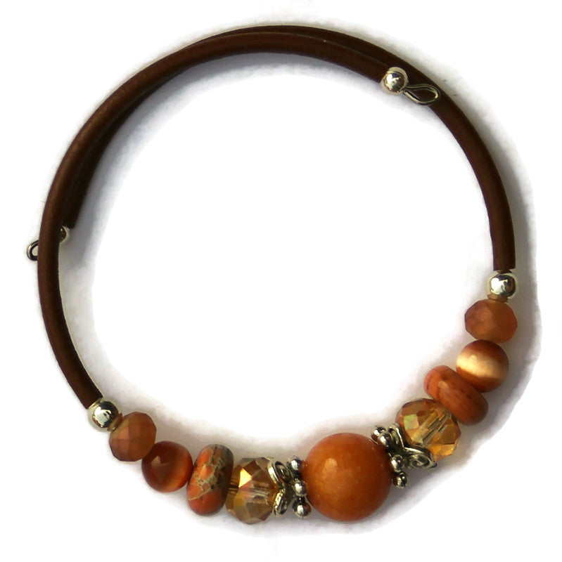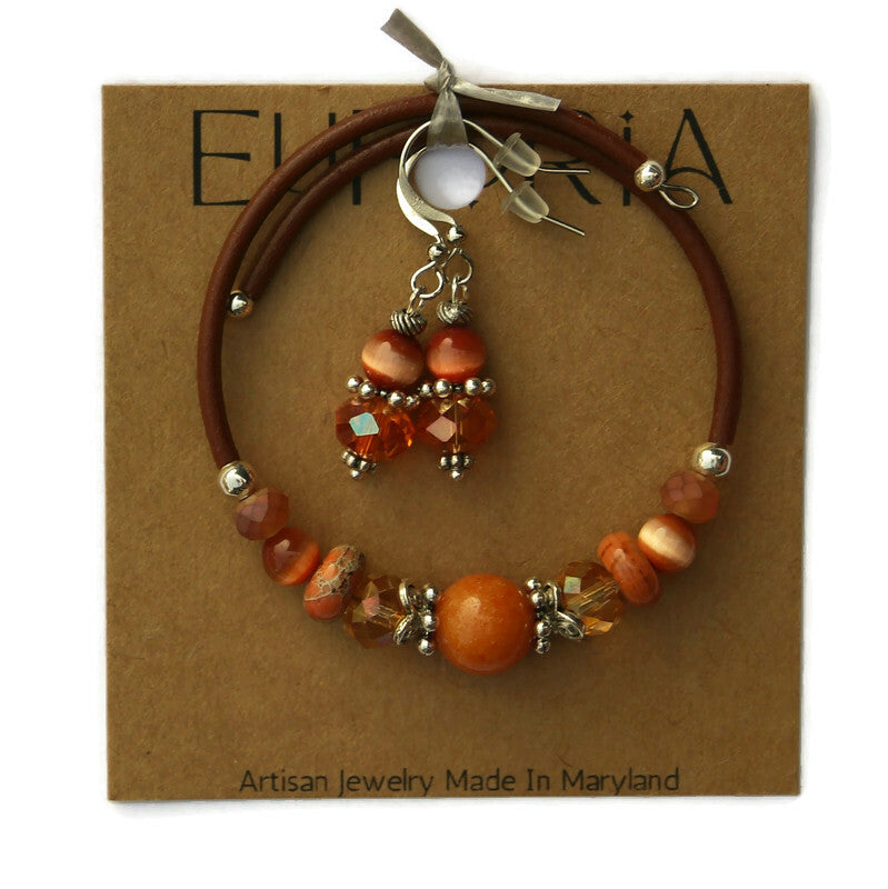 Wrap Bracelet & Earring Set - Burnt Orange Riverstone