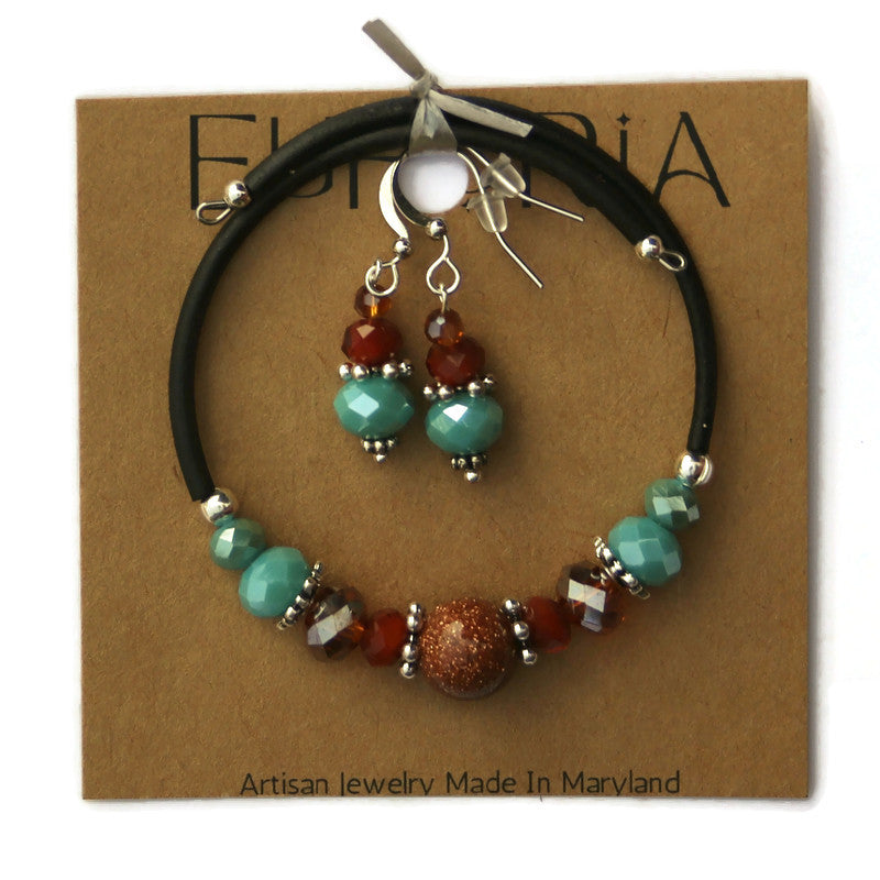 Wrap Bracelet & Earring Set - Goldstone
