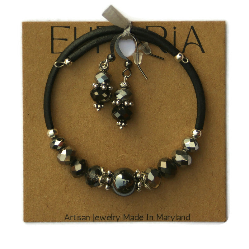 Wrap Bracelet & Earring Set - Magnetic Hematite