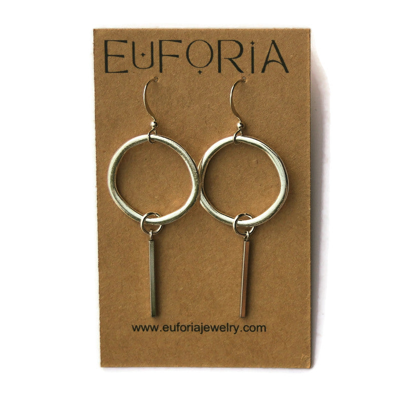 Organic outlines make this silver plated circle charm so interesting and more so when paired with this .75" stainless bar charm. Circle charm is a touch under 1" wide OD.