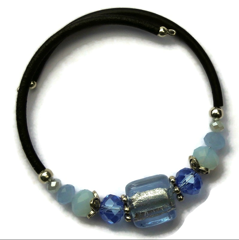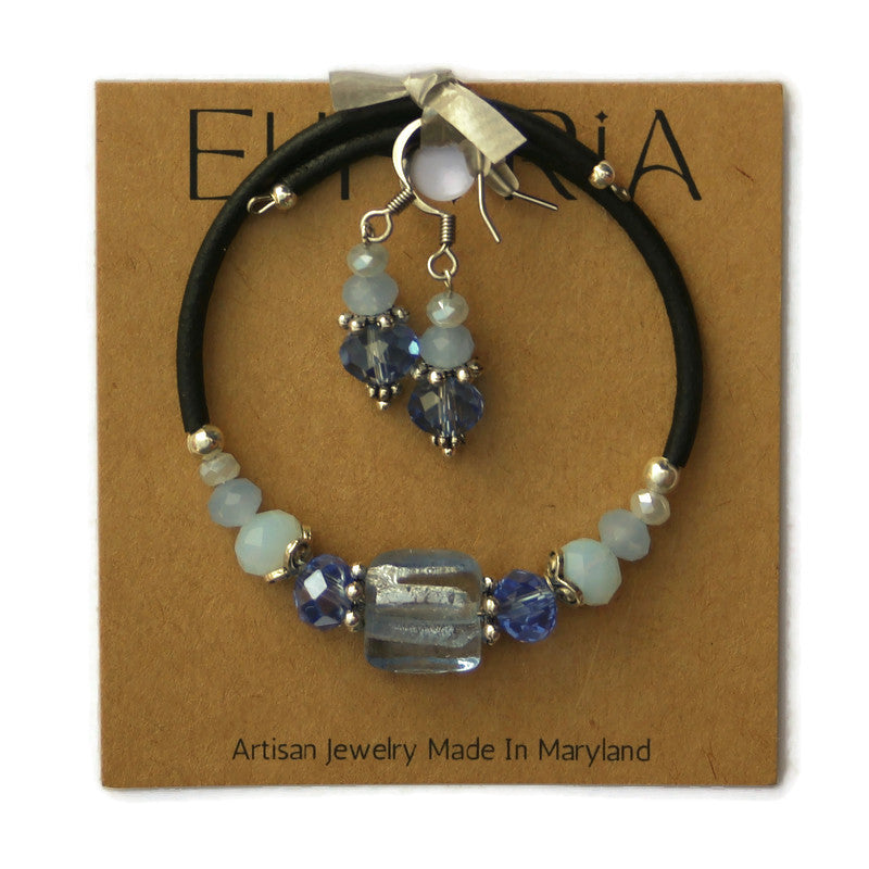 Wrap Bracelet & Earring Set - Light Sapphire Silver Foil Glass