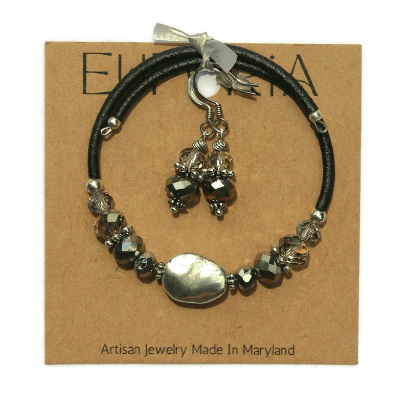 Wrap Bracelet & Earring Set - Organic Silver Oval