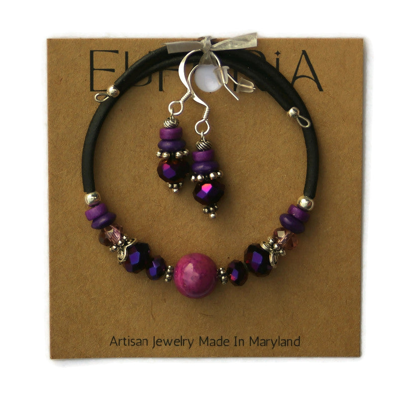 Wrap Bracelet & Earring Set - Plum Riverstone