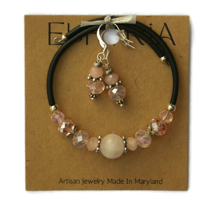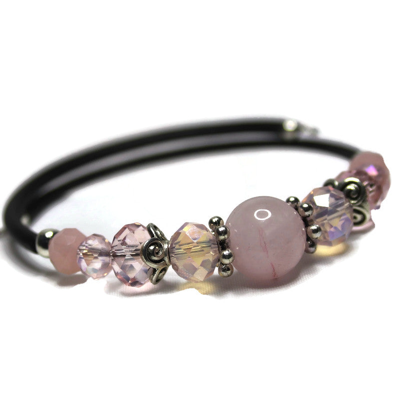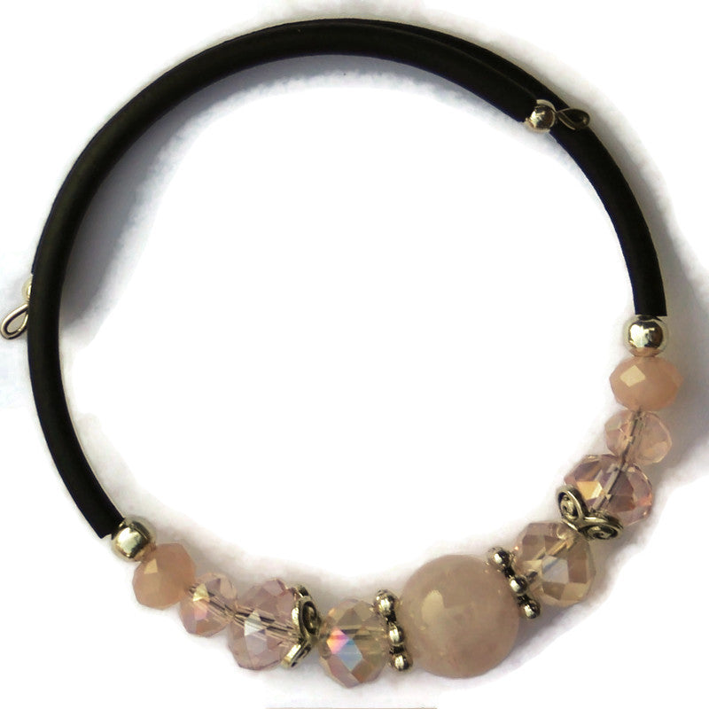 Super comfortable silicone covered flexible wire makes these beautiful bracelets a long time best selling item. So easy to put on with not clasp needed - the wire stays in it's circular shape and nicely wraps around your wrist. One size fits most.