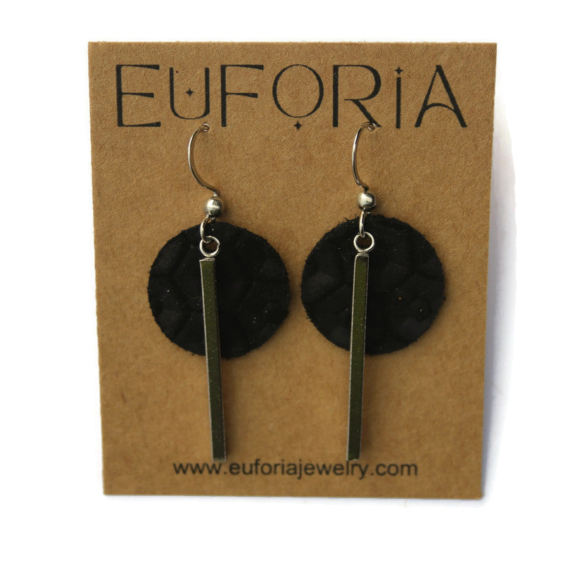 Small Circle & Bar Leather Earrings - Black