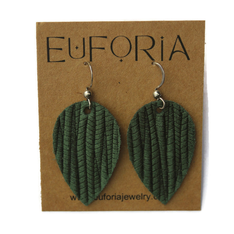Small Teardrop Leather Earring - Pine Woven