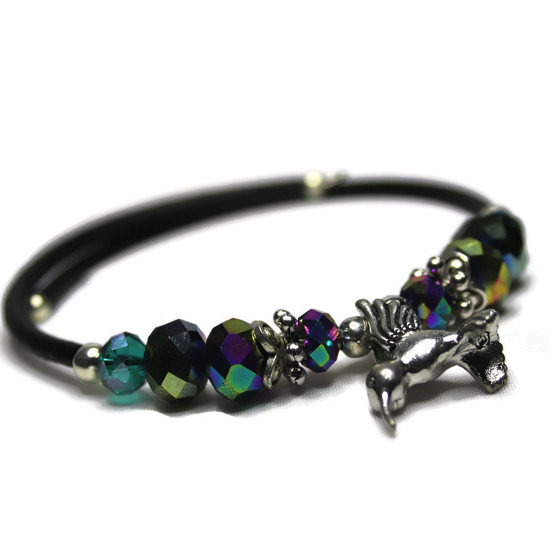 Super comfortable silicone covered flexible wire makes these beautiful bracelets a long time best selling item. So easy to put on with no clasp needed - the wire stays in it's circular shape and nicely wraps around your wrist. One size fits most.