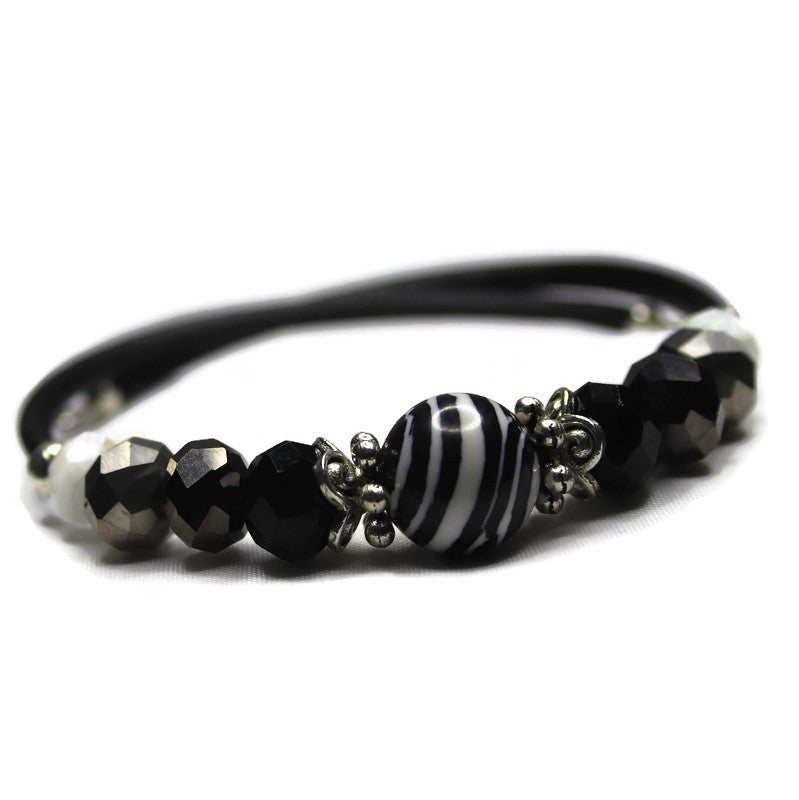 Super comfortable silicone covered flexible wire makes these beautiful bracelets a long time best selling item. So easy to put on with not clasp needed - the wire stays in it's circular shape and nicely wraps around your wrist. One size fits most.